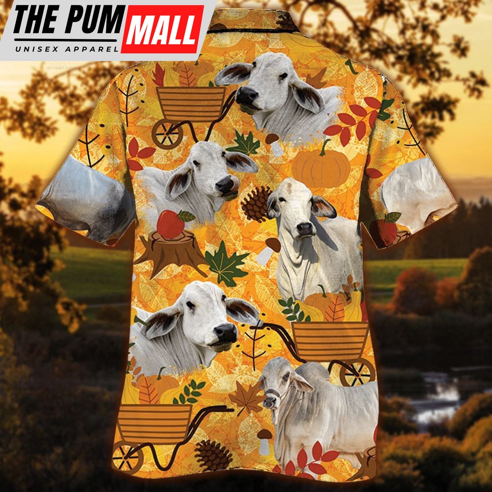 Farm Hawaiian Shirt, Brahman Cattle Nature Autumn Pumpkin All Over Printed 3D Hawaiian Shirt, Animal Hawaiian Shirt