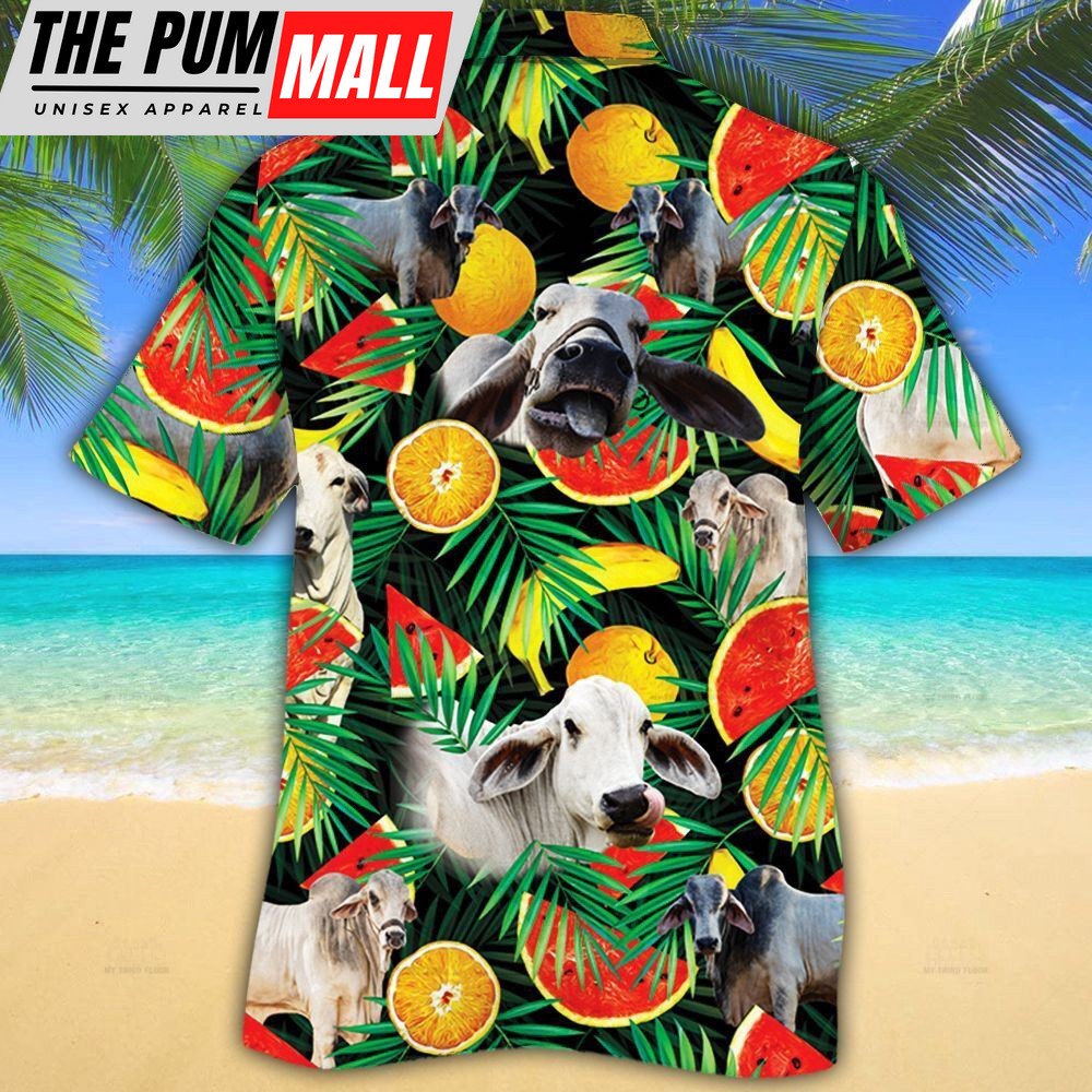 Farm Hawaiian Shirt, Brahman Cattle Tropical Fruits All Over Printed 3D Hawaiian Shirt, Animal Hawaiian Shirt