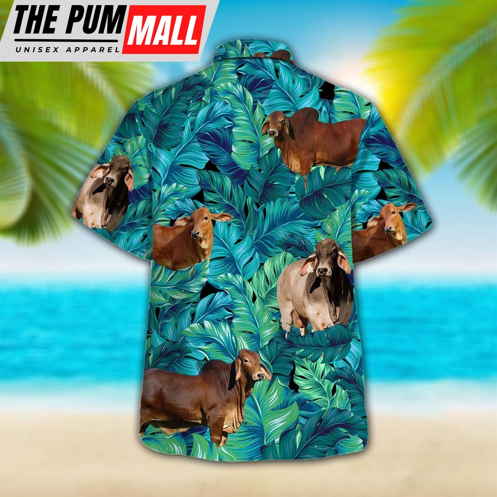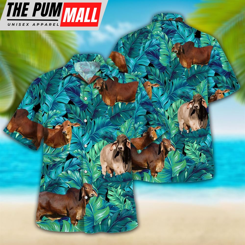Farm Hawaiian Shirt, Brahman Tropical Hawaiian Palm Leaves All Over Printed 3D Hawaiian Shirt, Animal Hawaiian Shirt