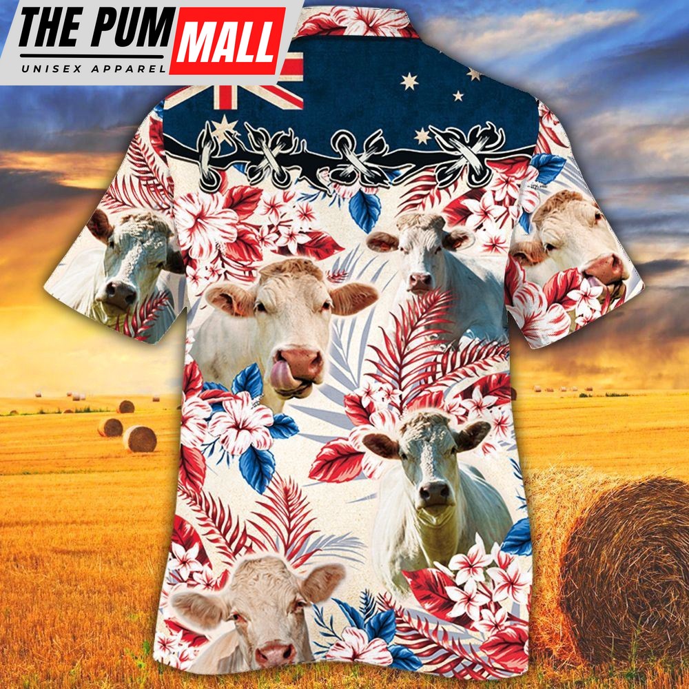 Farm Hawaiian Shirt, Charolais Cattle Australian Flag Hawaiian Flowers All Over Printed 3D Hawaiian Shirt, Animal Hawaiian Shirt