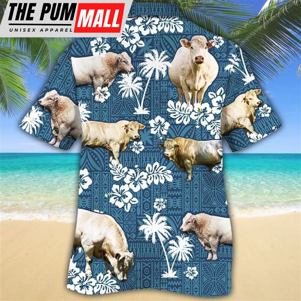 Farm Hawaiian Shirt, Charolais Cattle Blue Tribal All Over Printed 3D Hawaiian Shirt, Animal Hawaiian Shirt