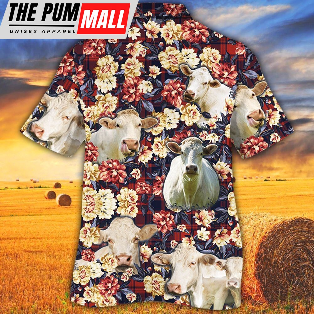 Farm Hawaiian Shirt, Charolais Cattle Red Plaid Pattern All Over Printed 3D Hawaiian Shirt, Animal Hawaiian Shirt