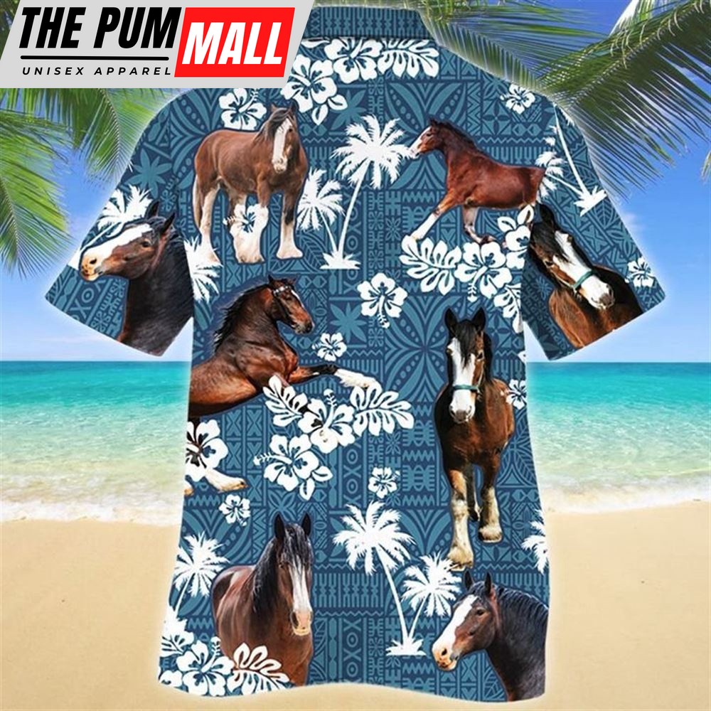 Farm Hawaiian Shirt, Clydesdale Horse Blue Tribal All Over Printed 3D Hawaiian Shirt, Animal Hawaiian Shirt