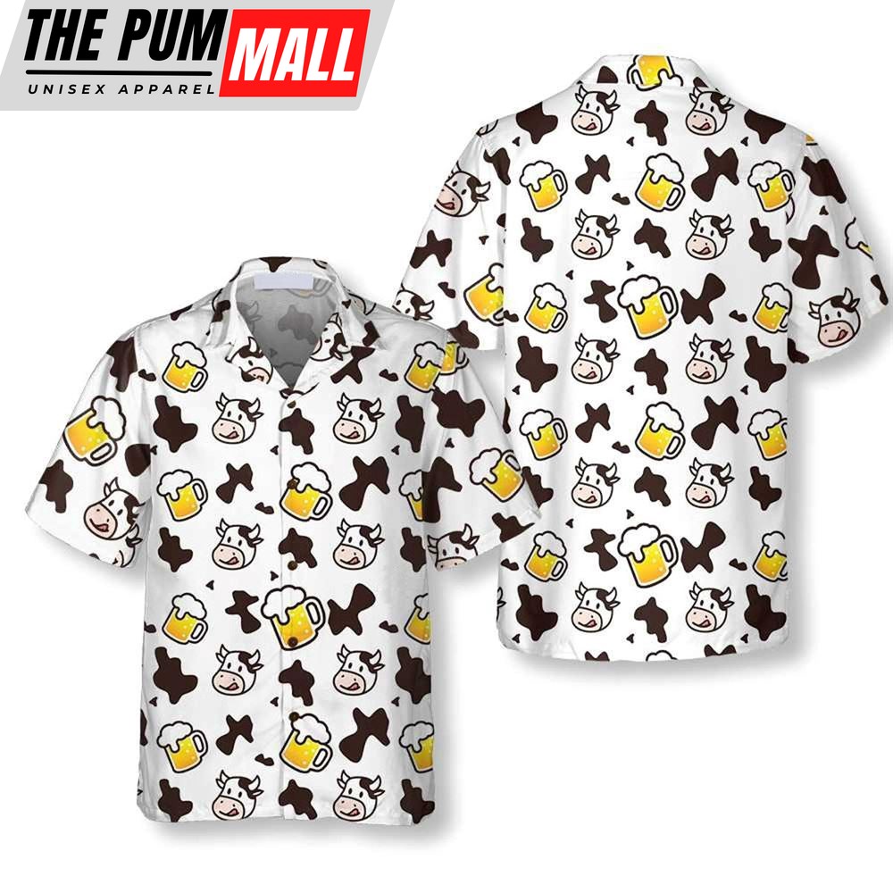 Farm Hawaiian Shirt, Cow And Beer Mug Seamless Pattern Cow All Printed 3D Hawaiian Shirt, Animal Hawaiian Shirt