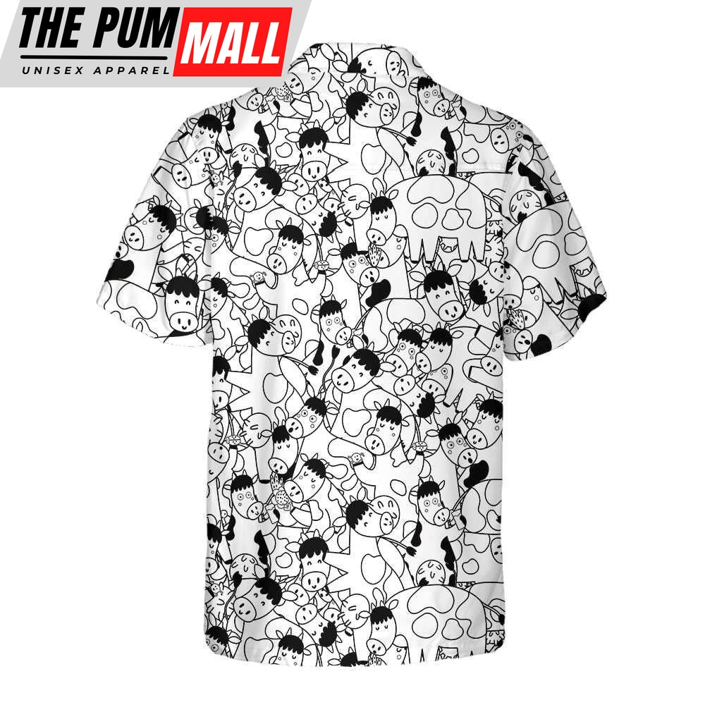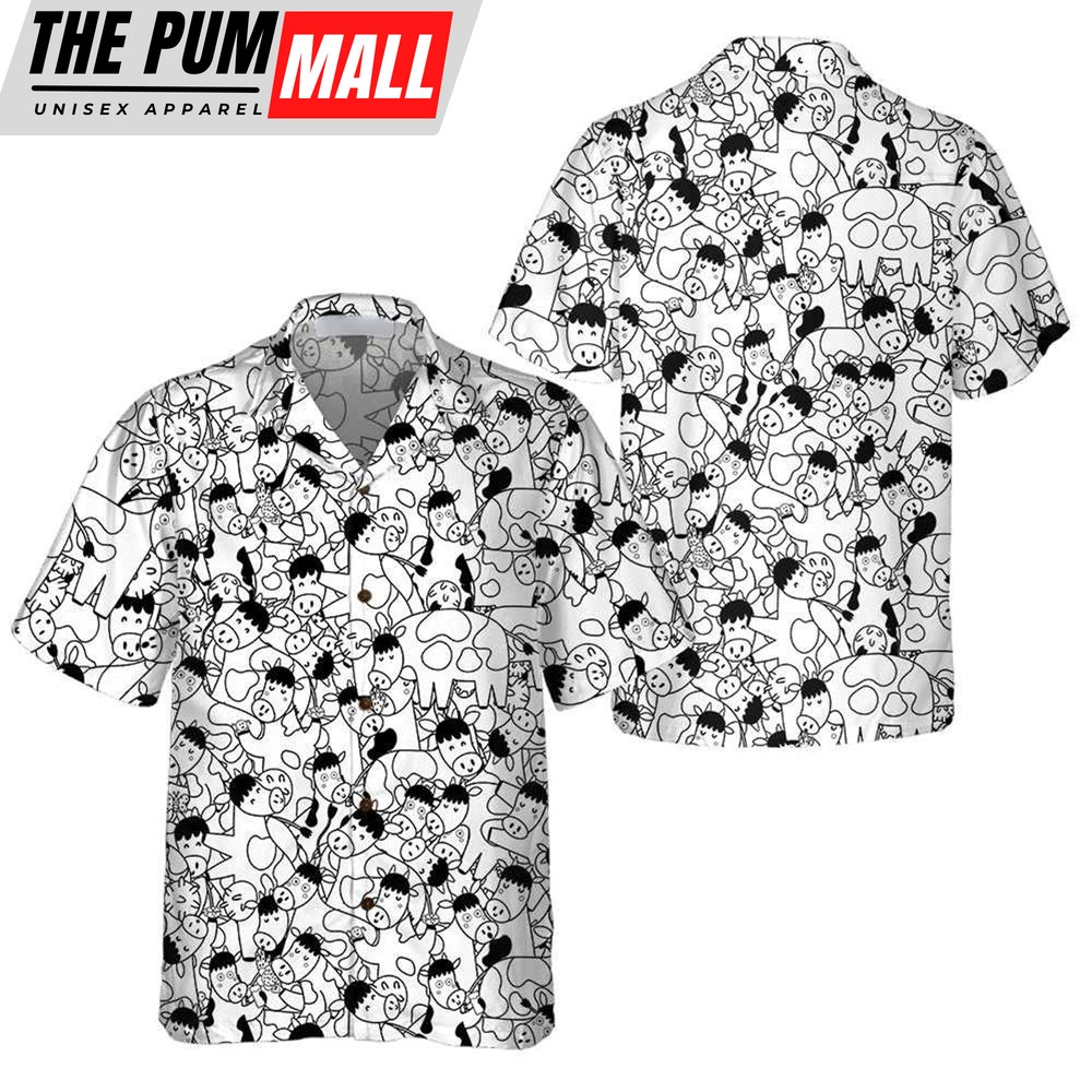 Farm Hawaiian Shirt, Funny Cow Doodle Pattern All Printed 3D Hawaiian Shirt, Animal Hawaiian Shirt