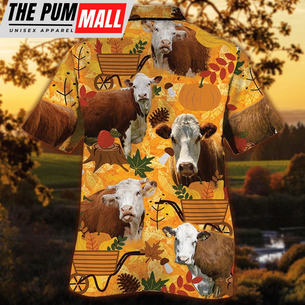 Farm Hawaiian Shirt, Hereford Cattle Nature Autumn Pumpkin All Over Printed 3D Hawaiian Shirt, Animal Hawaiian Shirt