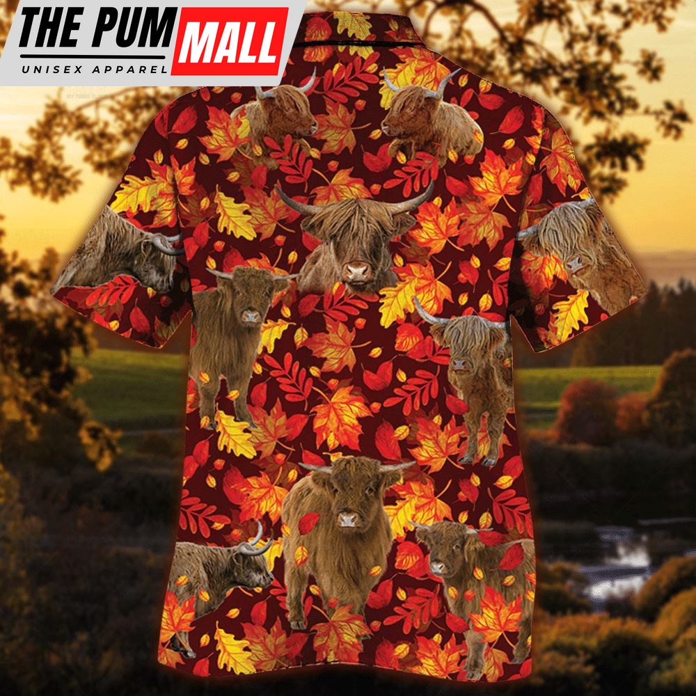Farm Hawaiian Shirt, Highland Cattle Autumn Leaves All Over Printed 3D Hawaiian Shirt, Animal Hawaiian Shirt