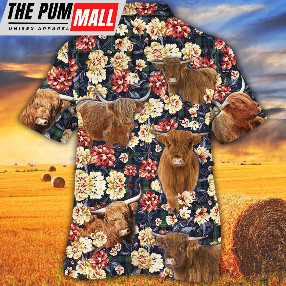 Farm Hawaiian Shirt, Highland Cattle Green Plaid Pattern All Over Printed 3D Hawaiian Shirt, Animal Hawaiian Shirt