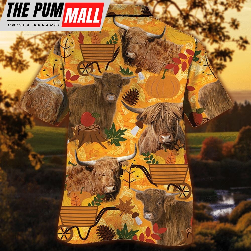 Farm Hawaiian Shirt, Highland Cattle Nature Autumn Pumpkin All Over Printed 3D Hawaiian Shirt, Animal Hawaiian Shirt