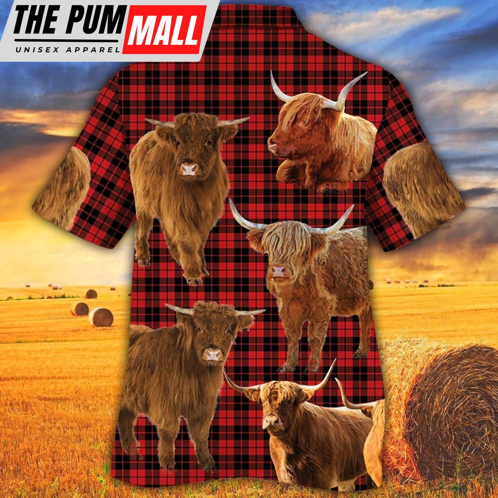 Farm Hawaiian Shirt, Highland Cattle Red Tartan Pattern All Over Printed 3D Hawaiian Shirt, Animal Hawaiian Shirt