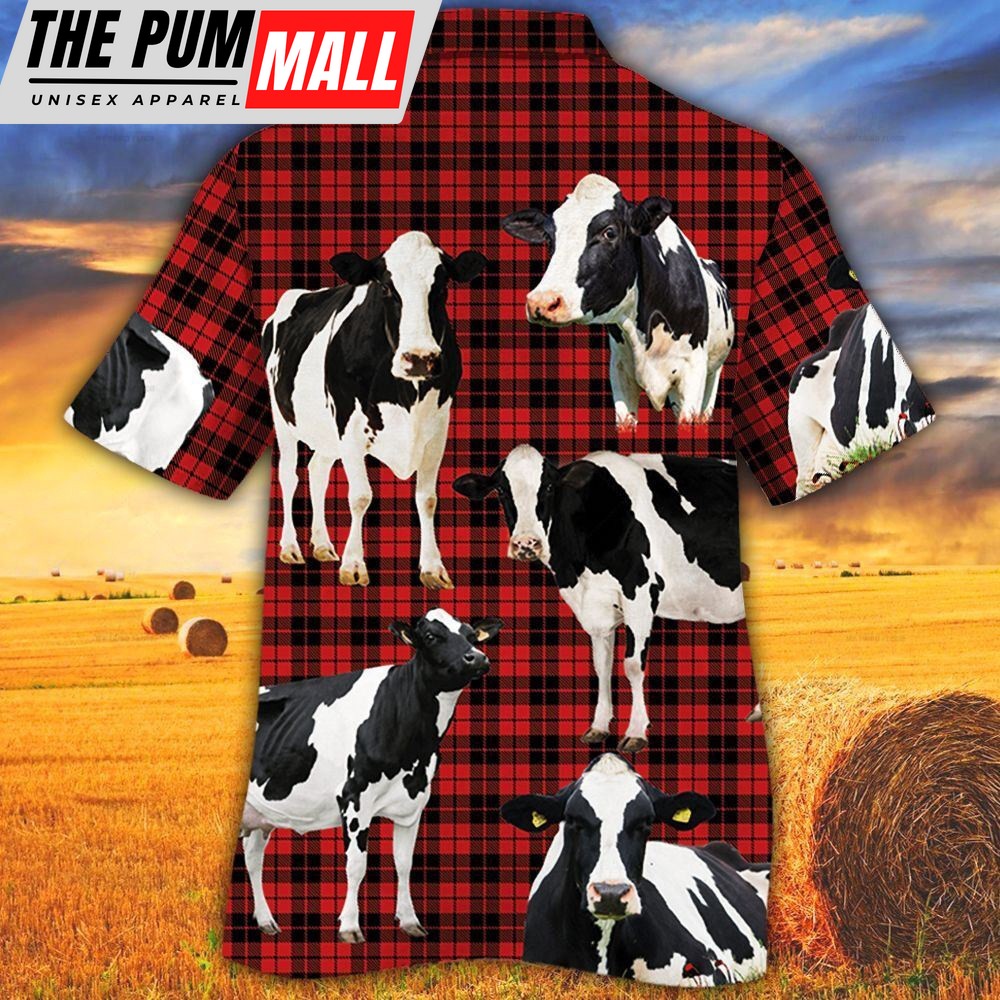 Farm Hawaiian Shirt, Holstein Friesian Cattle Red Tartan Pattern All Over Printed 3D Hawaiian Shirt, Animal Hawaiian Shirt