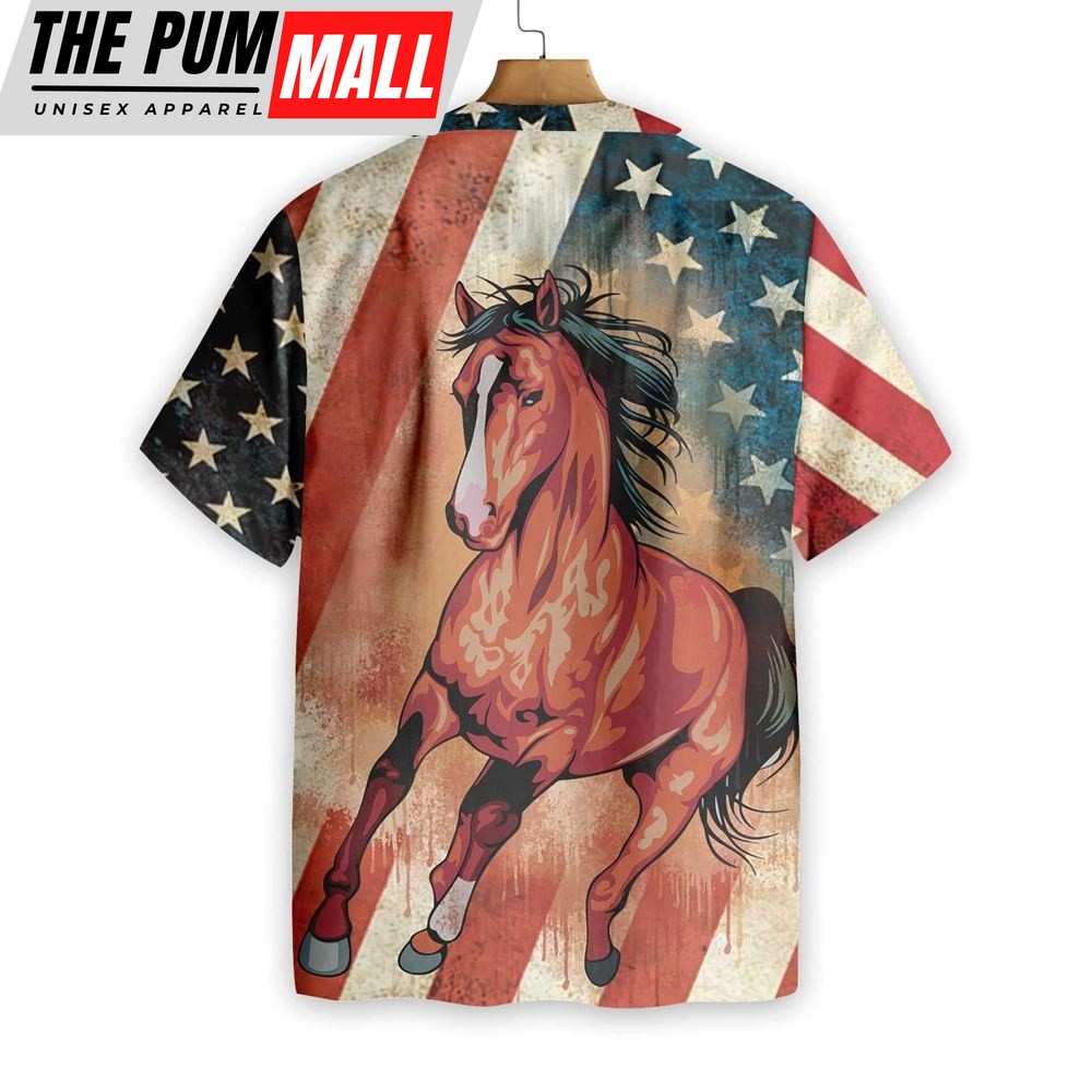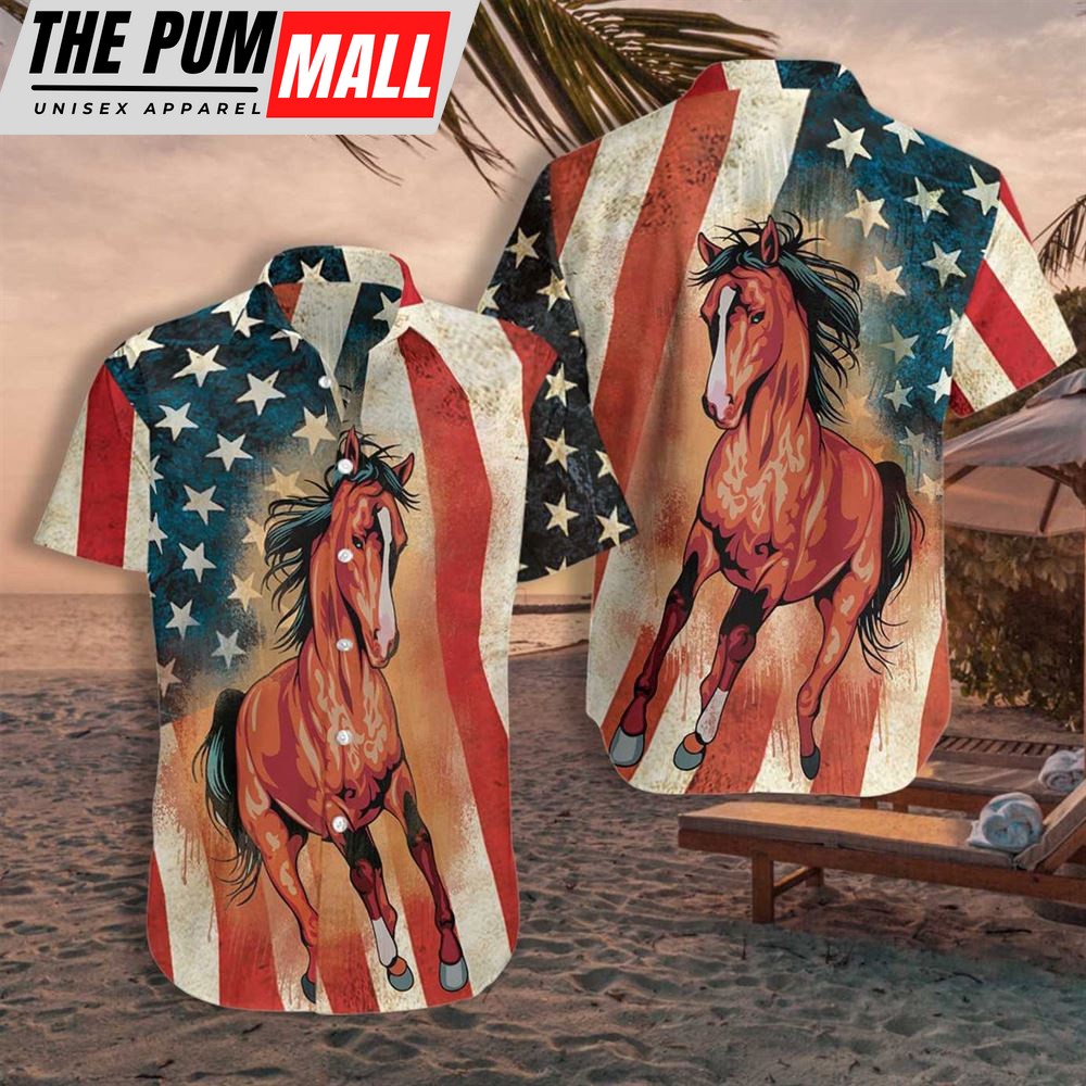 Farm Hawaiian Shirt, Horse American Flag All Printed 3D Hawaiian Shirt, Animal Hawaiian Shirt