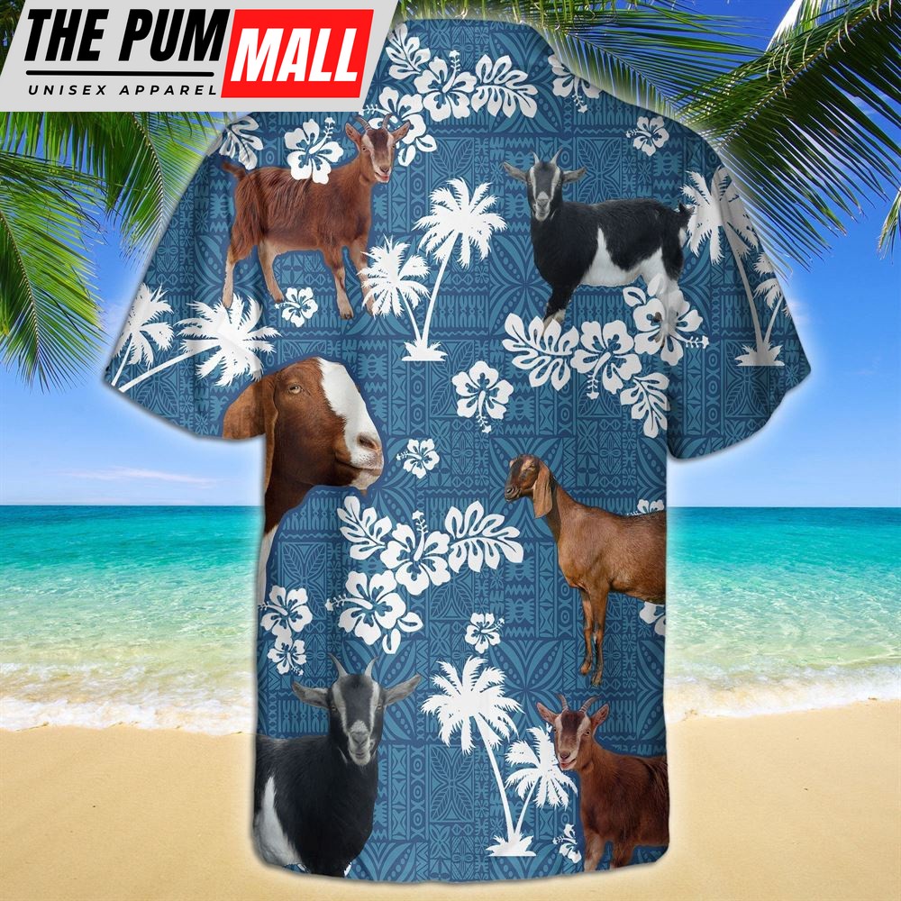 Farm Hawaiian Shirt, Nubian Goat Blue Tribal All Over Printed 3D Hawaiian Shirt, Animal Hawaiian Shirt
