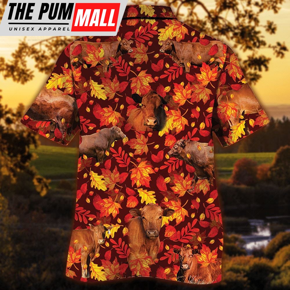 Farm Hawaiian Shirt, Red Angus Cattle Autumn Leaves All Over Printed 3D Hawaiian Shirt, Animal Hawaiian Shirt