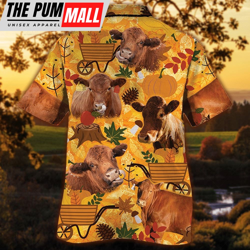 Farm Hawaiian Shirt, Red Angus Cattle Nature Autumn Pumpkin All Over Printed 3D Hawaiian Shirt, Animal Hawaiian Shirt