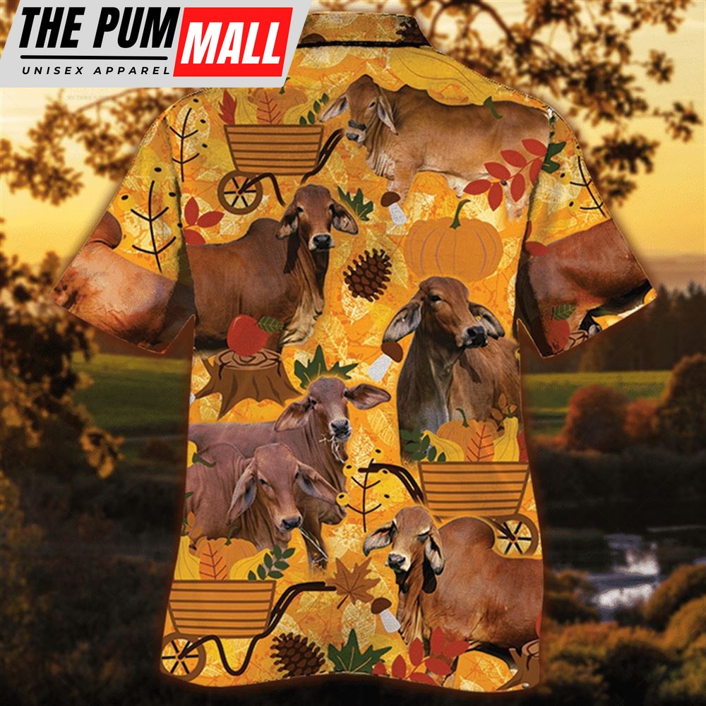 Farm Hawaiian Shirt, Red Brahman Cattle Lovers Orange Nature Autumn Hawaiian Shirt, Animal Hawaiian Shirt