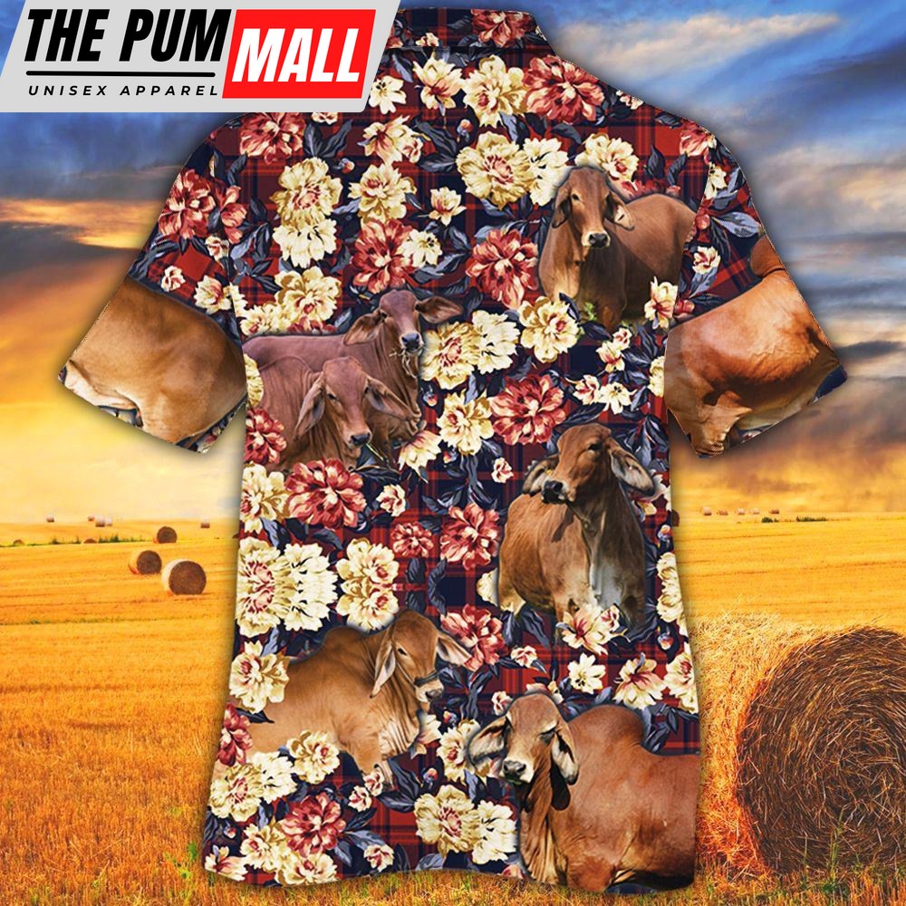 Farm Hawaiian Shirt, Red Brahman Cattle Red Plaid Pattern All Over Printed 3D Hawaiian Shirt, Animal Hawaiian Shirt