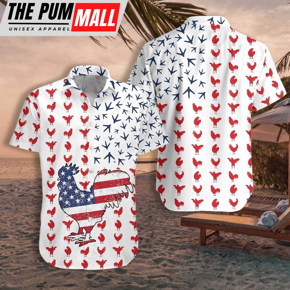 Farm Hawaiian Shirt, Rooster American Flag All Printed 3D Hawaiian Shirt, Animal Hawaiian Shirt