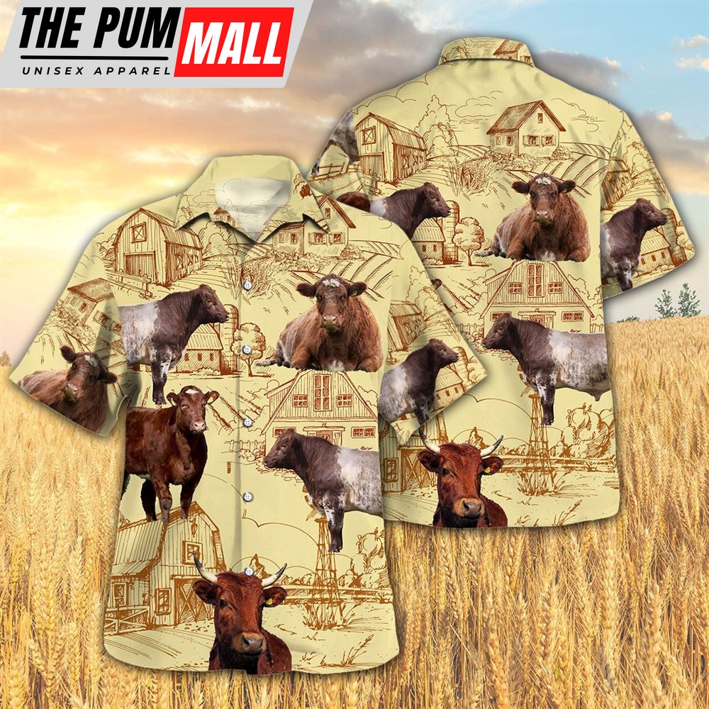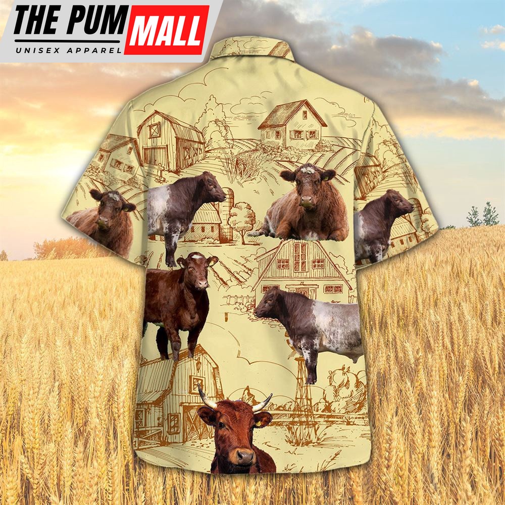 Farm Hawaiian Shirt, Shorthorn Cattle Farm All Over Printed 3D Hawaiian Shirt, Animal Hawaiian Shirt