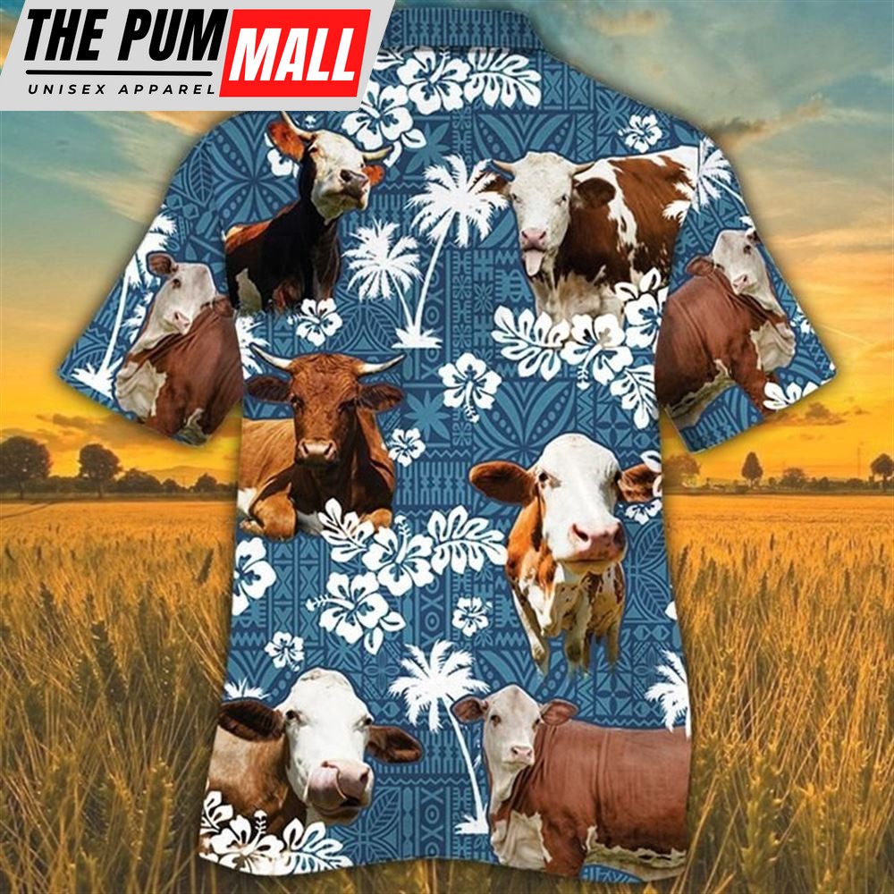 Farm Hawaiian Shirt, Simmental Cattle Blue Tribal All Over Printed 3D Hawaiian Shirt, Animal Hawaiian Shirt