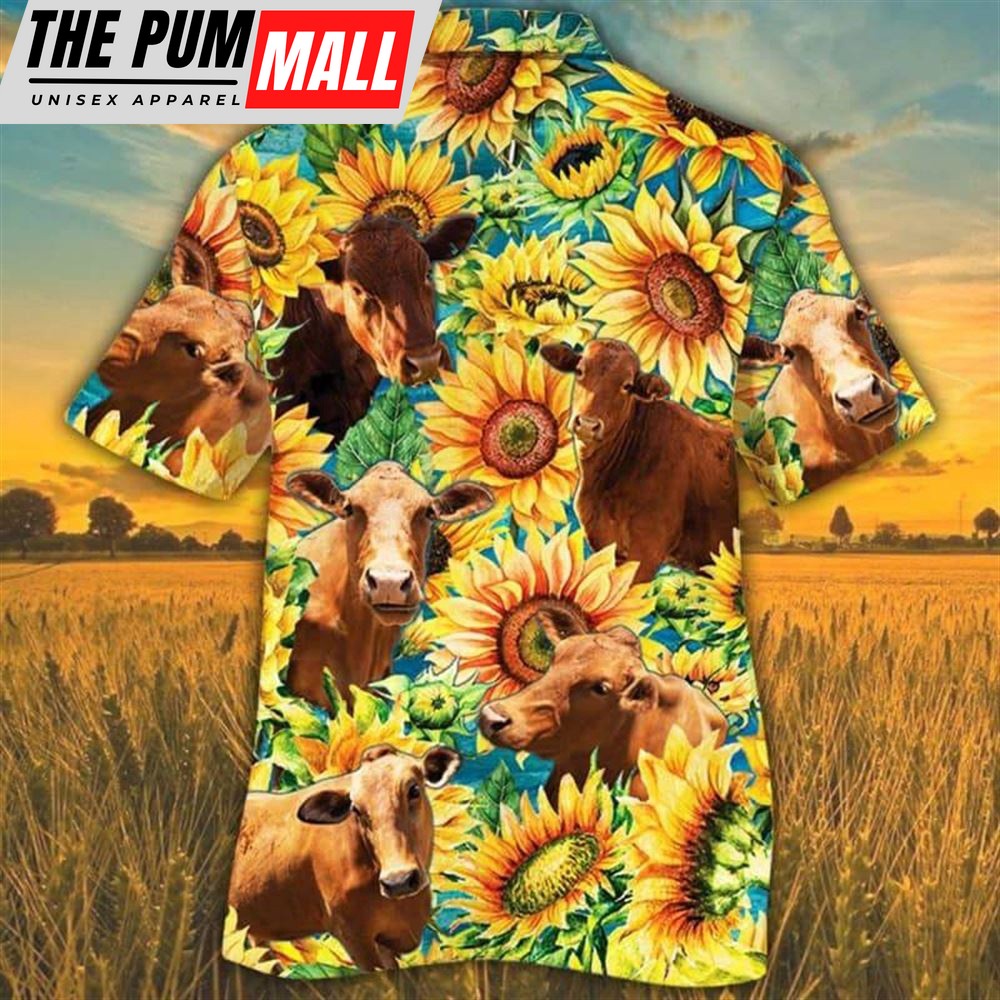 Farm Hawaiian Shirt, Sunflower Beefmaster Cattle All Printed 3D Hawaiian Shirt, Animal Hawaiian Shirt