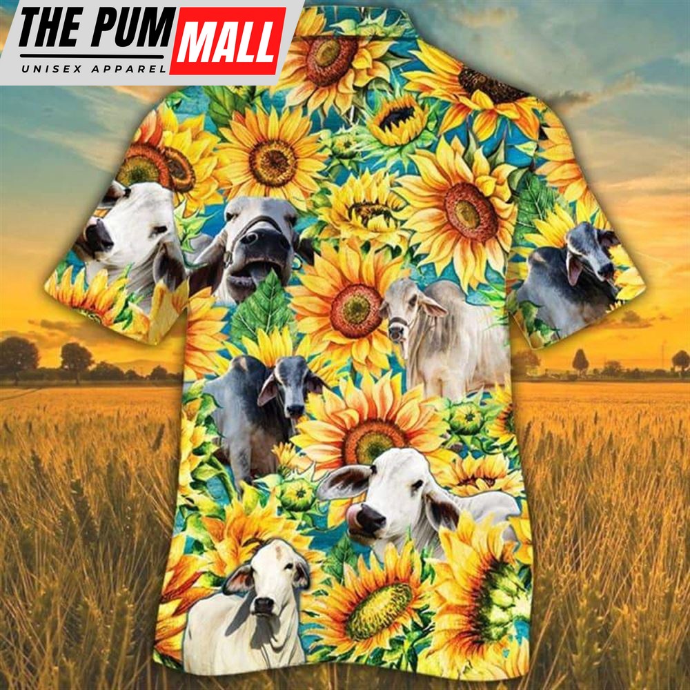 Farm Hawaiian Shirt, Sunflower Brahman Cattle All Printed 3D Hawaiian Shirt, Animal Hawaiian Shirt