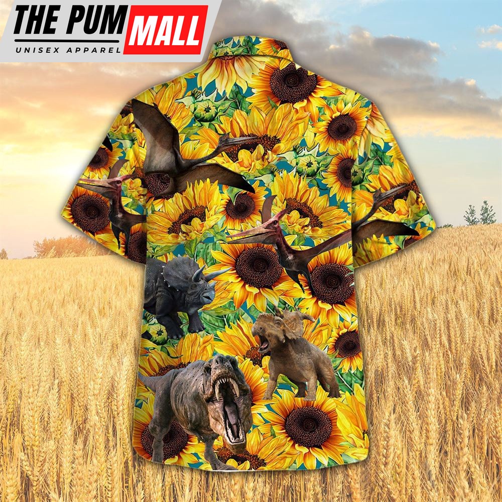 Farm Hawaiian Shirt, Sunflower Dinosaur All Printed 3D Hawaiian Shirt, Animal Hawaiian Shirt