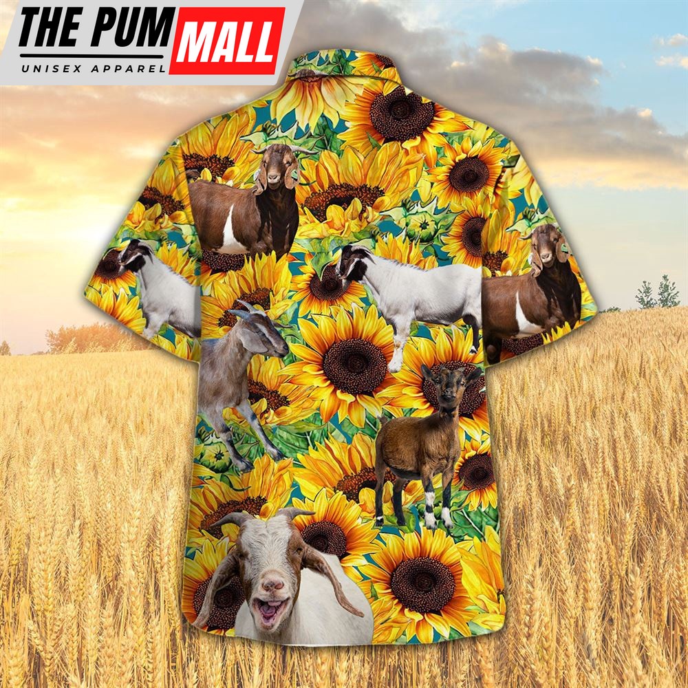 Farm Hawaiian Shirt, Sunflower Goat All Printed 3D Hawaiian Shirt, Animal Hawaiian Shirt