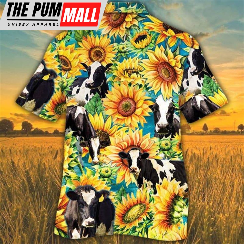 Farm Hawaiian Shirt, Sunflower Holstein Friesian Cattle All Printed 3D Hawaiian Shirt, Animal Hawaiian Shirt