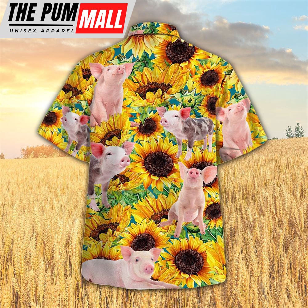 Farm Hawaiian Shirt, Sunflower Pig All Printed 3D Hawaiian Shirt, Animal Hawaiian Shirt