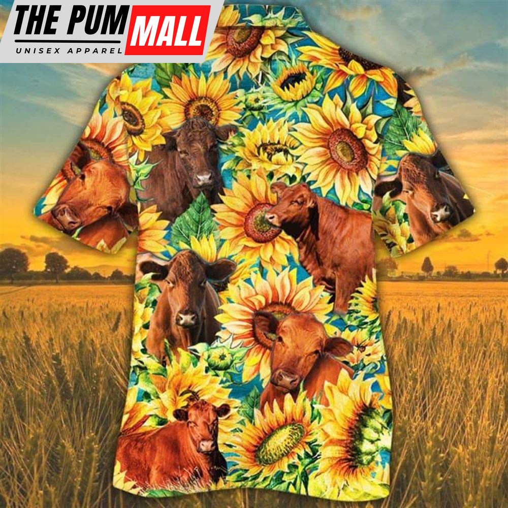 Farm Hawaiian Shirt, Sunflower Red Angus Cattle All Printed 3D Hawaiian Shirt, Animal Hawaiian Shirt