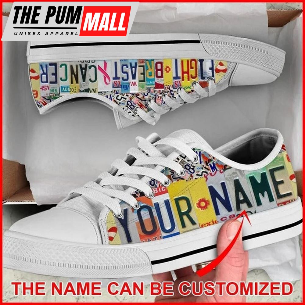 Fight Breast Cancer License Plates Personalized Canvas Low Top Shoes – Low Top Shoes Mens, Women