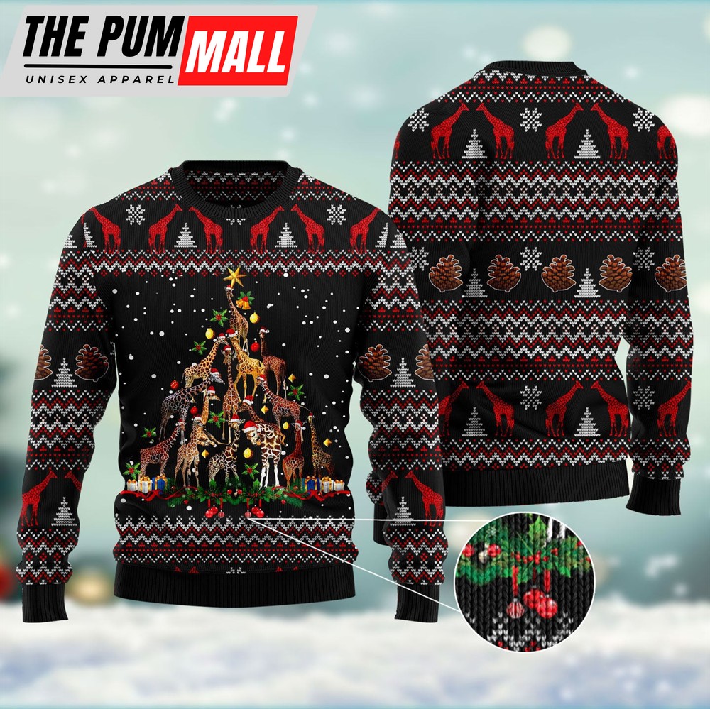 Giraffe Christmas Tree Ugly Christmas Sweater – Lover Xmas Sweater Gift – Unisex Crewneck Sweater