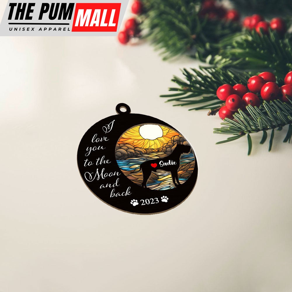 Great Dane Suncatcher Ornament, Love You To The Mon And Back, Great Dane Loss, Memorial Dog Ornament Limited Edition. Add a warm and meaningful touch to your holiday season with a personalized Christmas tree ornament crafted uniquely for your family. Perfect for those looking for unique, custom Christmas decorations, each ornament is beautifully designed to feature names, dates, or heartfelt messages. This custom ornament is more than just decor; it’s a symbol of joyful memories, love, hope, and the promise of a bright future.