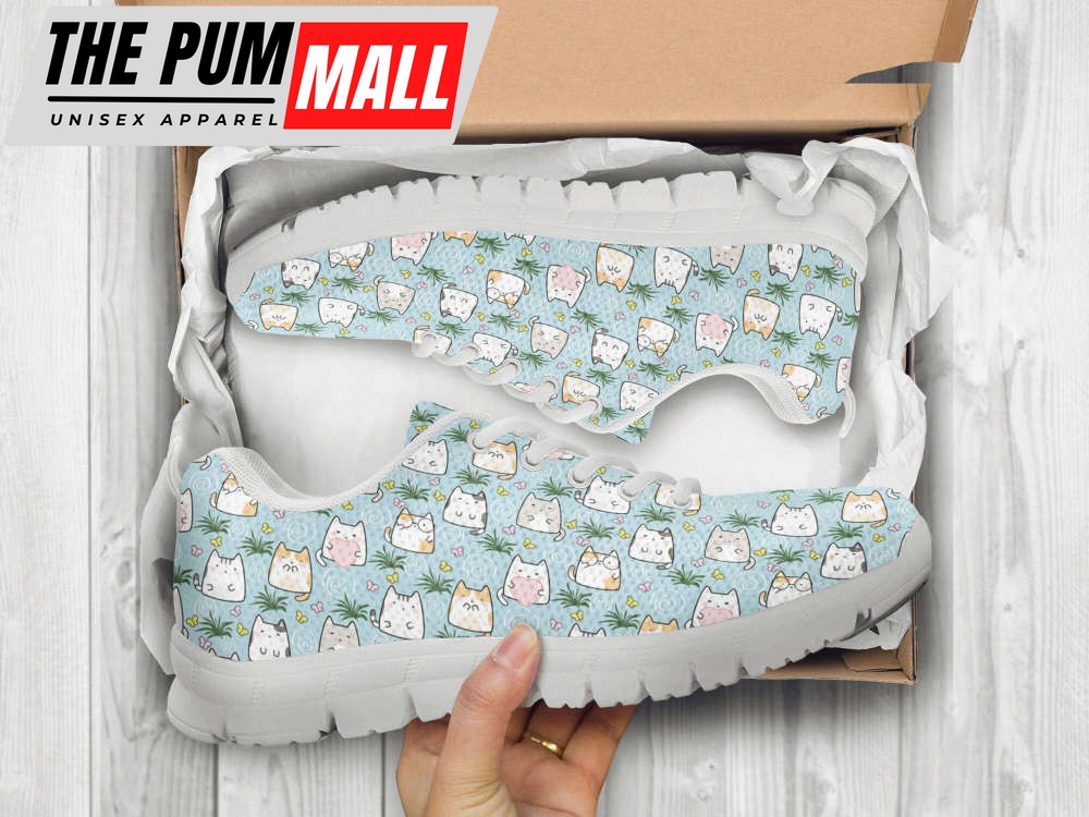 Green Cat Shoes Custom Name Shoes Cat Pattern Running Sneakers For Pet Lover