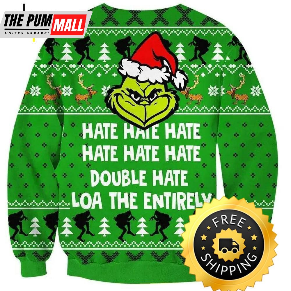 Grinch Hate Hate Hate Print Ugly Christmas Sweater, Christmas Grinch Sweater, Grinch Holiday Sweater
