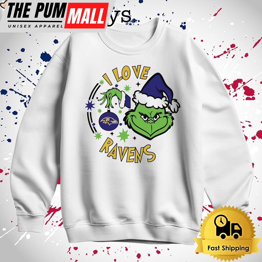 Grinch I Love Baltimore Ravens Christmas T Shirt