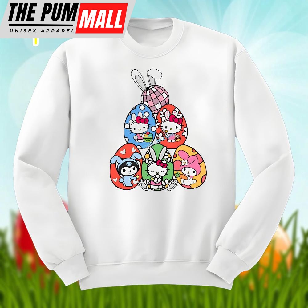 Happy Easter Day With Bunny Kitty Eggs Graphic Shirt