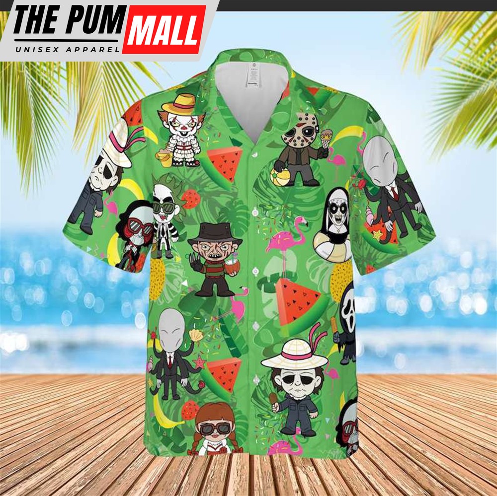 Horror Characters Halloween Hawaiian Shirt, Horror Aloha Vibes Beach Shirt, Gift for Horror Movie Fan Lover