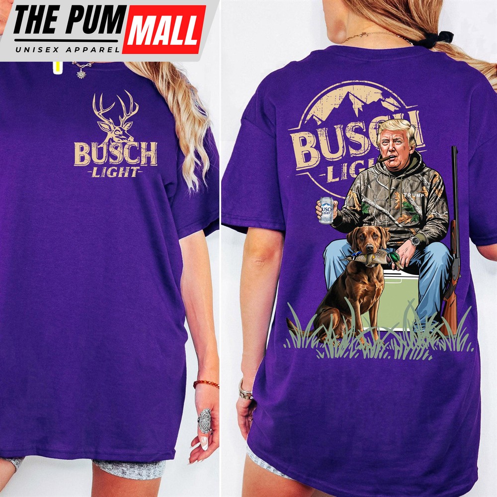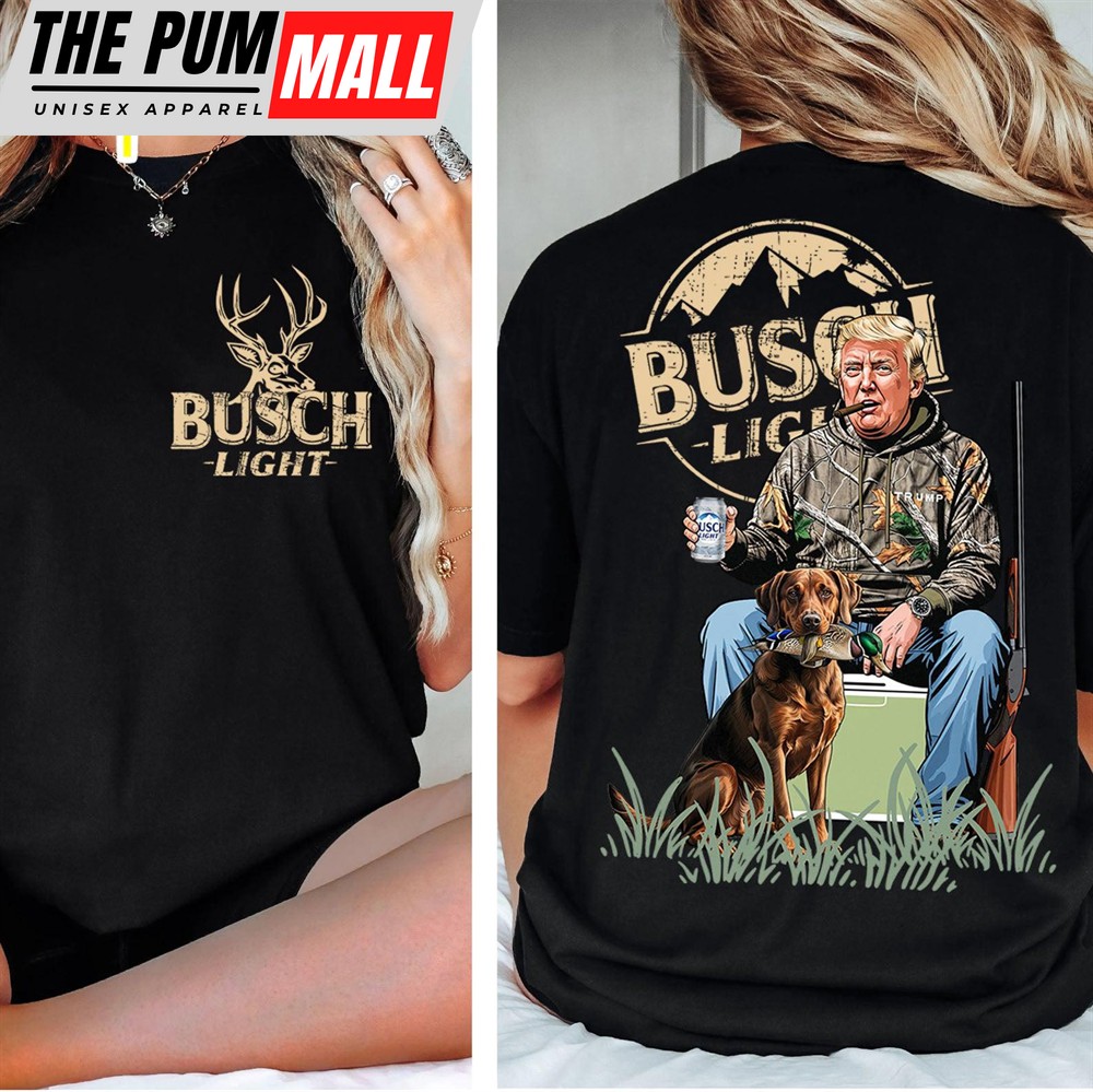 Hunting Trump Shirt Busch Light Trump Hunting Shirt Trump 2024 Shirt Trump Supporter Front & Back Shirt Dark