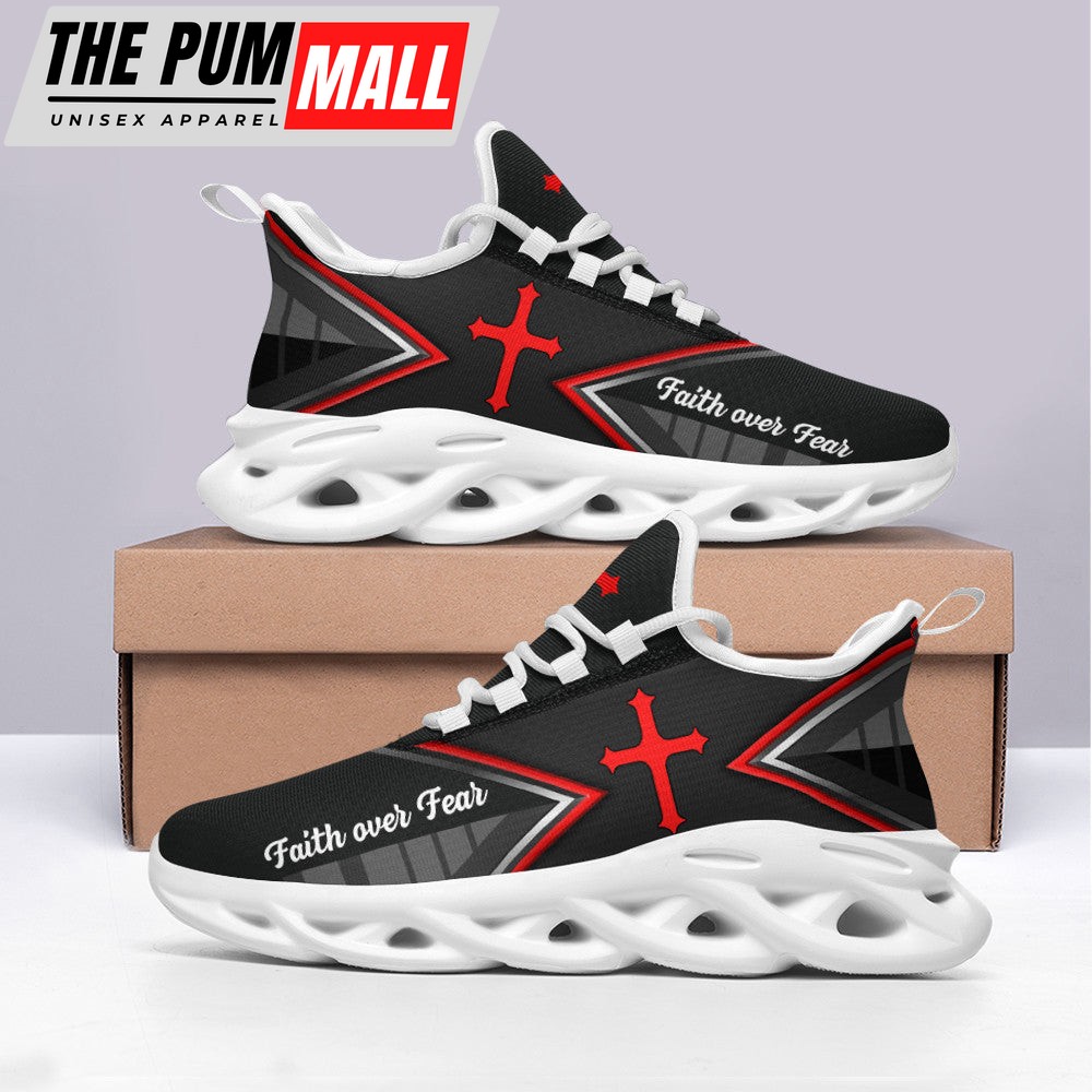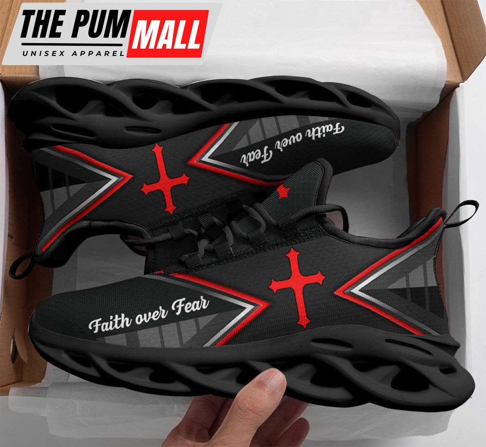 Jesus Faith Over Black Red Fear Running Sneakers Max Soul Shoes For Men And Women