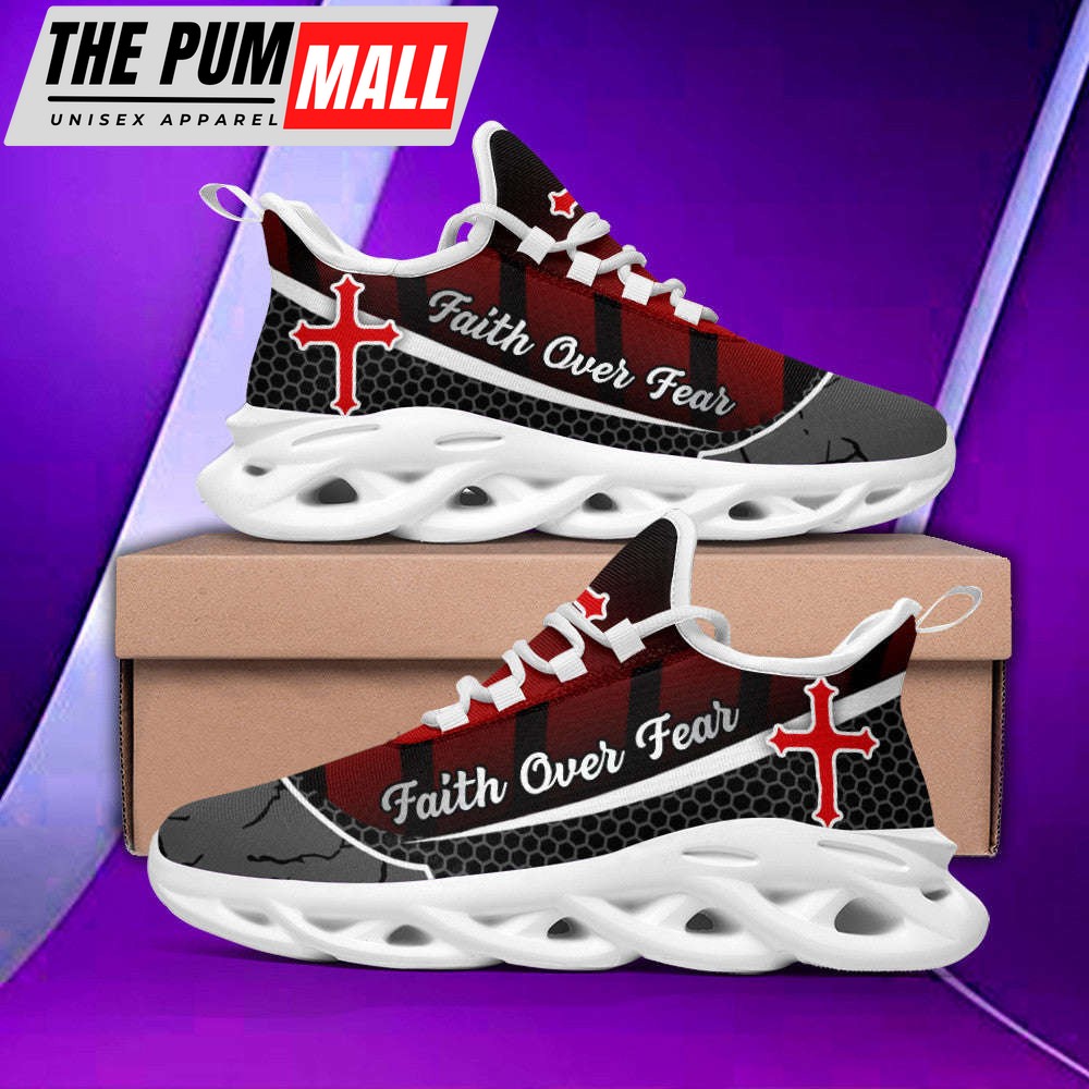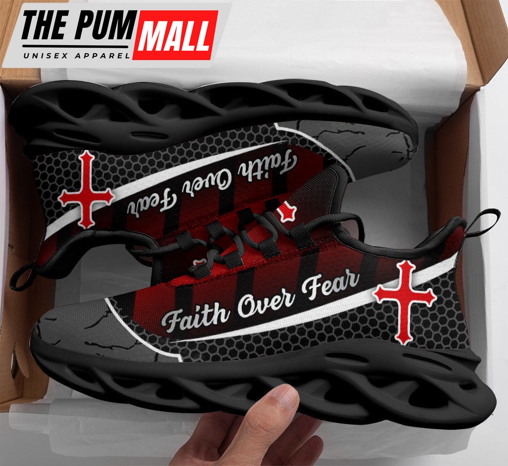 Jesus Faith Over Fear Red Black Running Sneakers Max Soul Shoes For Men And Women