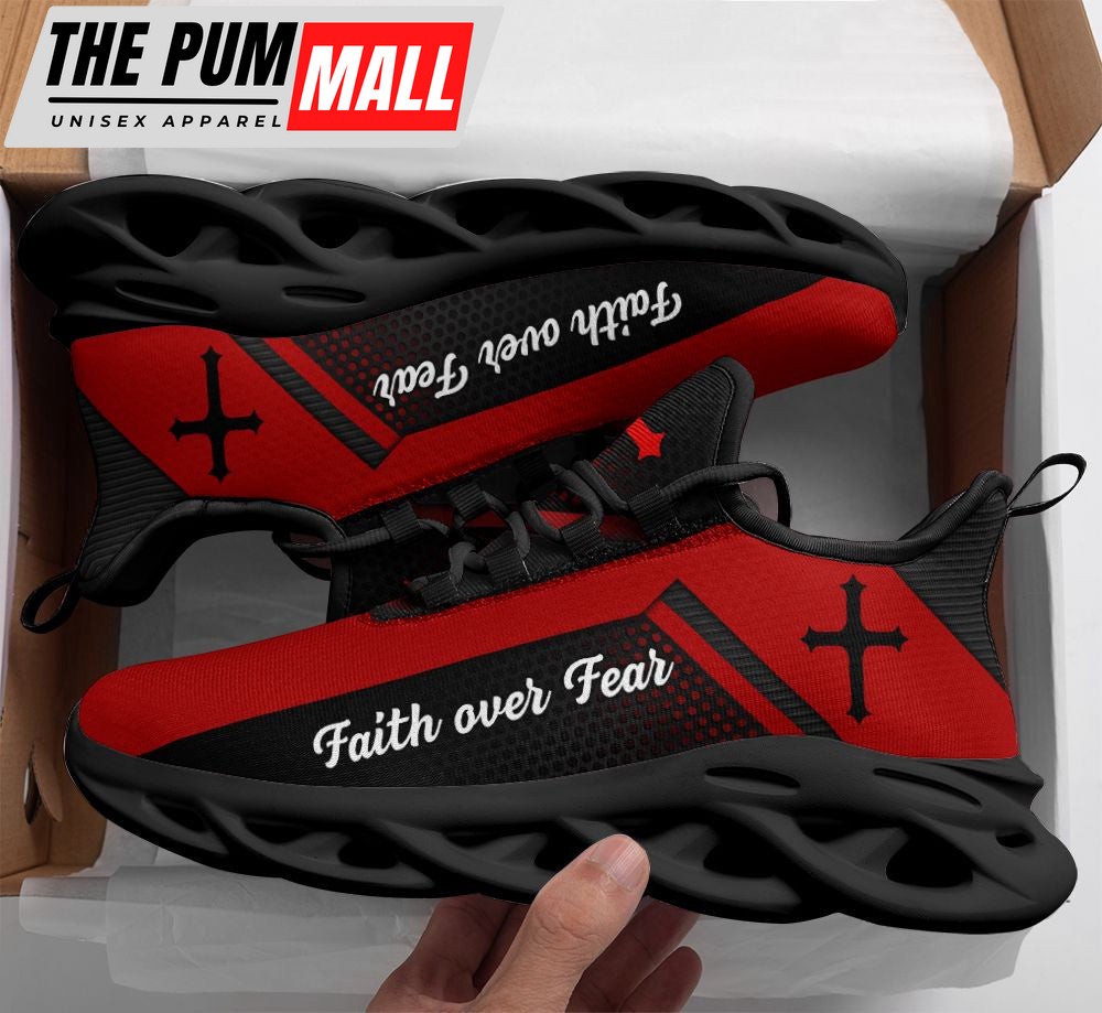Jesus Faith Over Fear Red Running Sneakers Max Soul Shoes For Men And Women
