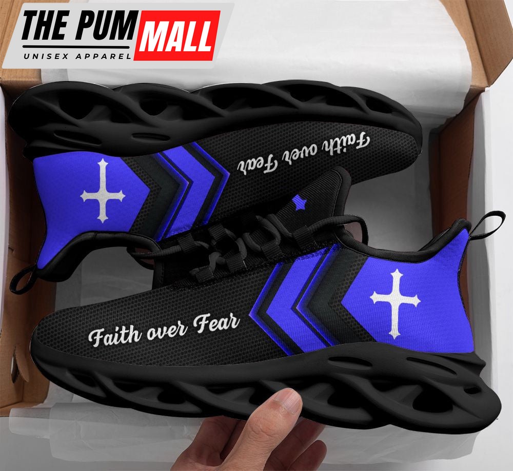 Jesus Faith Over Fear Running Sneakers Blue Black Max Soul Shoes For Men And Women