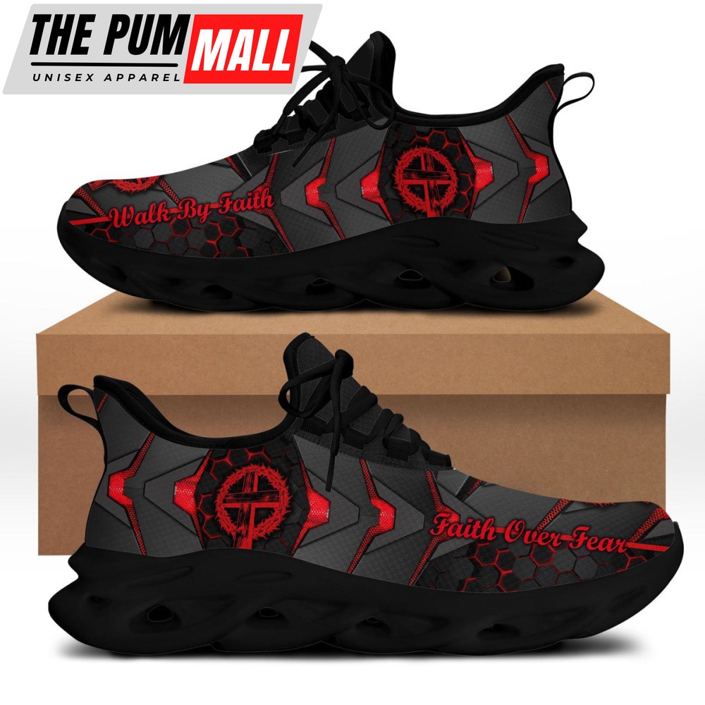 Jesus Red And Black Faith Over Fear Running Sneakers Max Soul Shoes For Men And Women