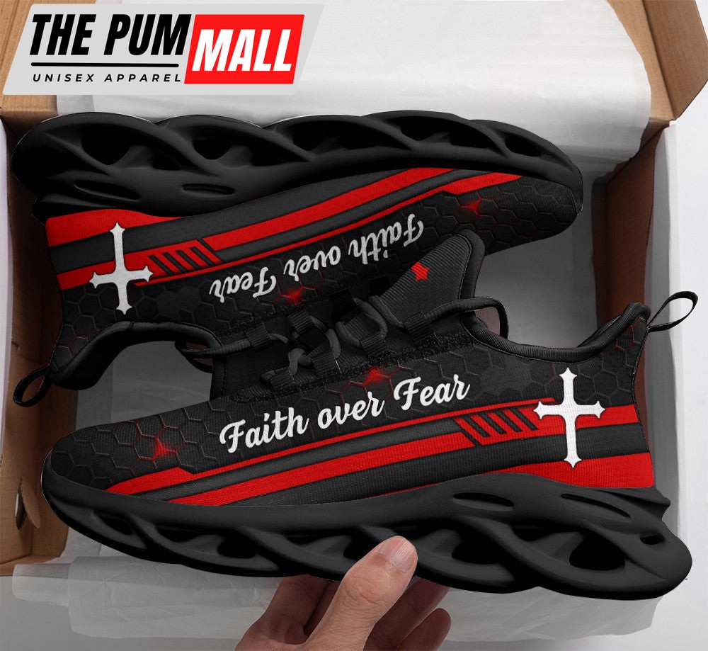 Jesus Red Black Faith Over Fear Running Sneakers Max Soul Shoes For Men And Women