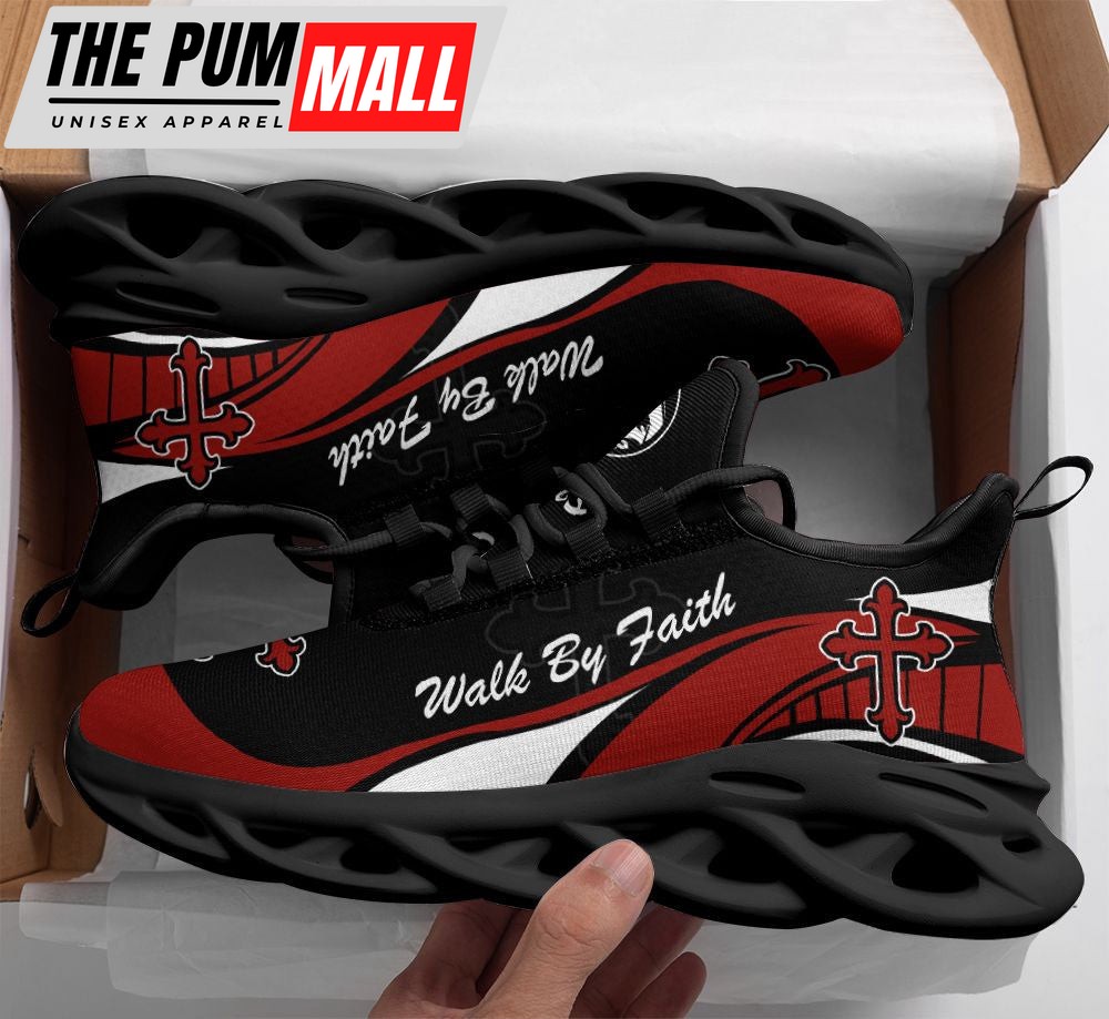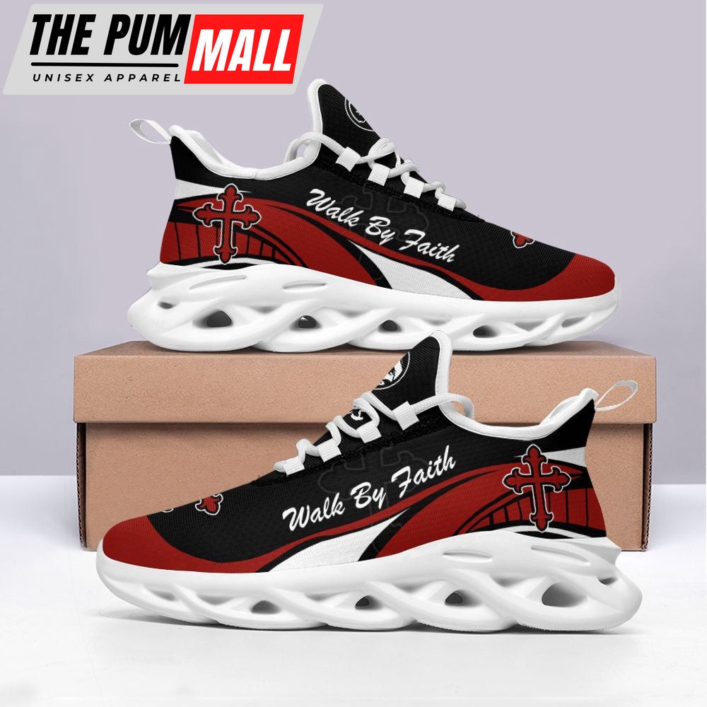 Jesus Walk By Faith Red And Black Running Sneakers Max Soul Shoes For Men And Women