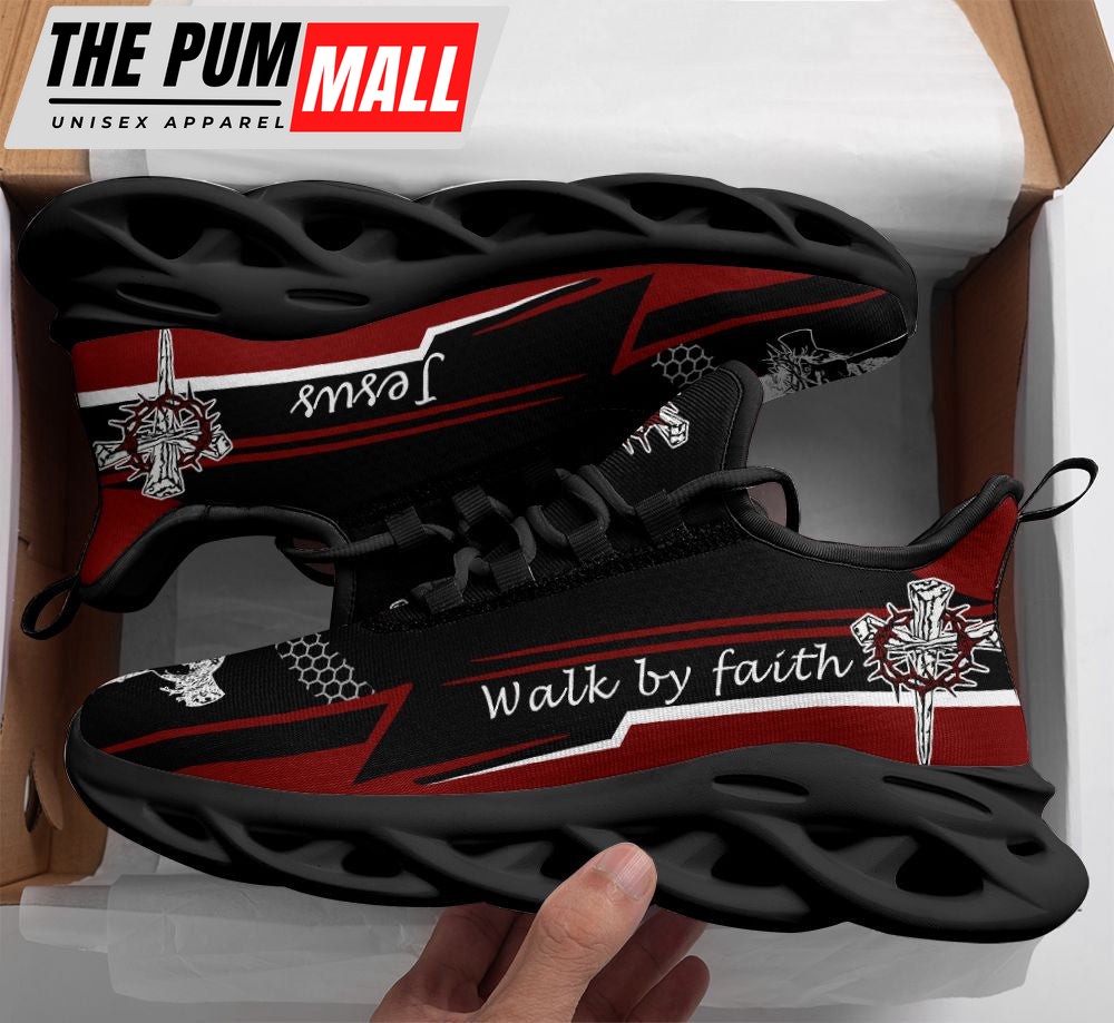 Jesus Walk By Faith Red Black Running Sneakers 3 Max Soul Shoes For Men And Women