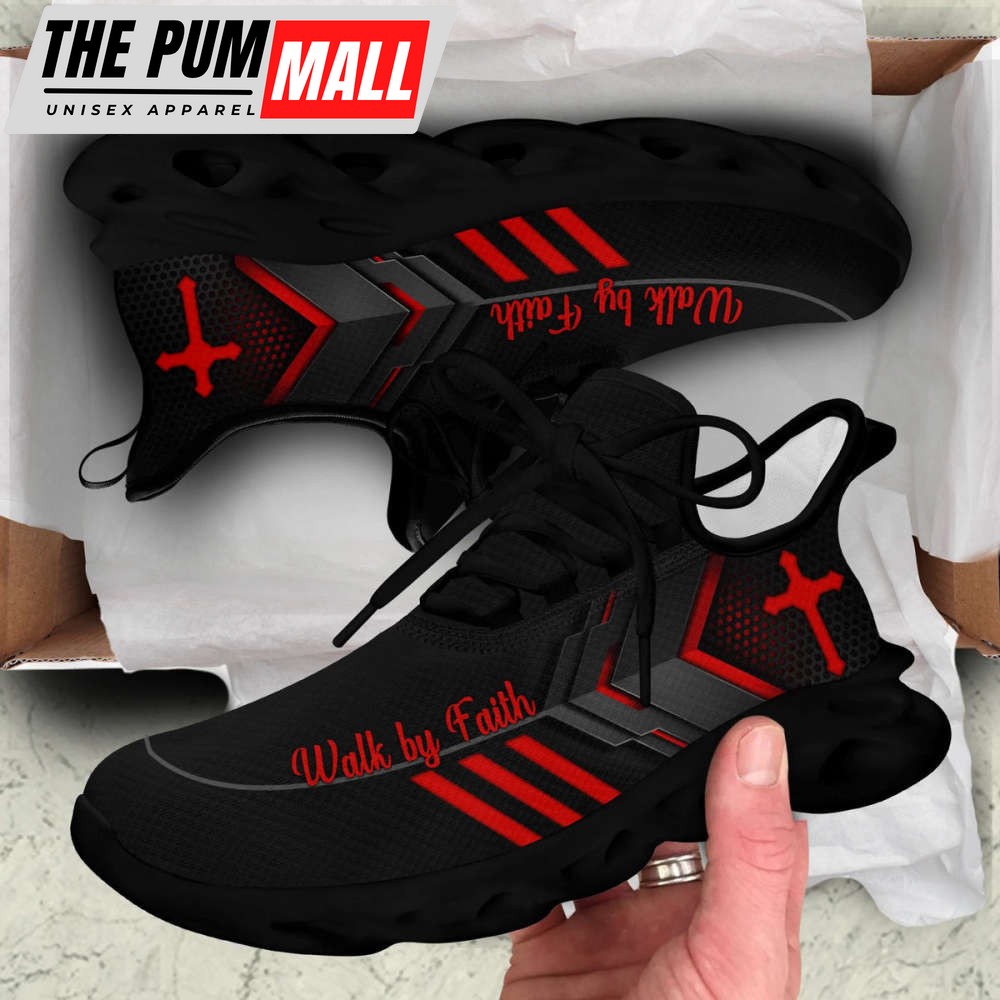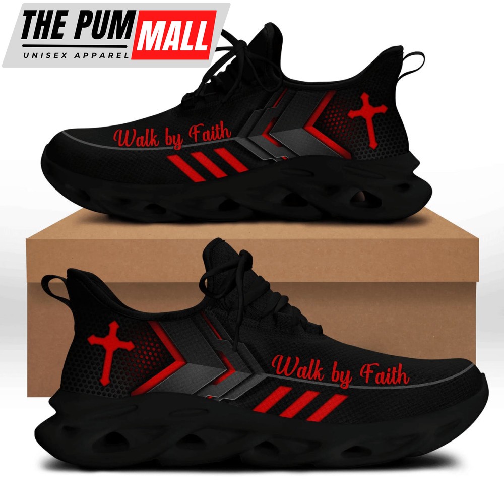 Jesus Walk By Faith Running Sneakers Red Black 3 Max Soul Shoes For Men And Women