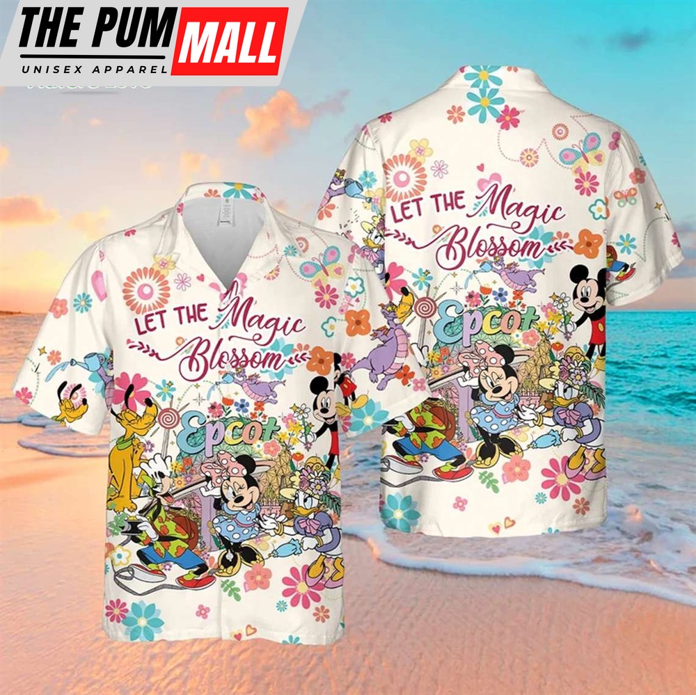 Let The Magic Blossom Disney Epcot Hawaiian Shirt, Mickey Minnie and Friends Hawaiian, Disneyland Trip Gifts